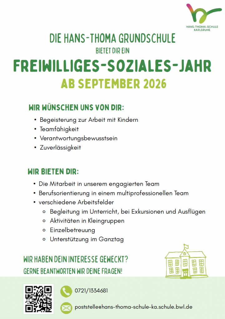 Die Hans-Thoma-Schule ist eine Ganztagesgrundschule in Wahlform in der Karlsruher Innenstadt-Ost, die sich durch jahrgangsgemischte Eingangsklassen und spezielle LRS-Förderangebote für eigene und externe Schüler*innen mit Lese-Rechtschreibschwierigkeiten auszeichnet.